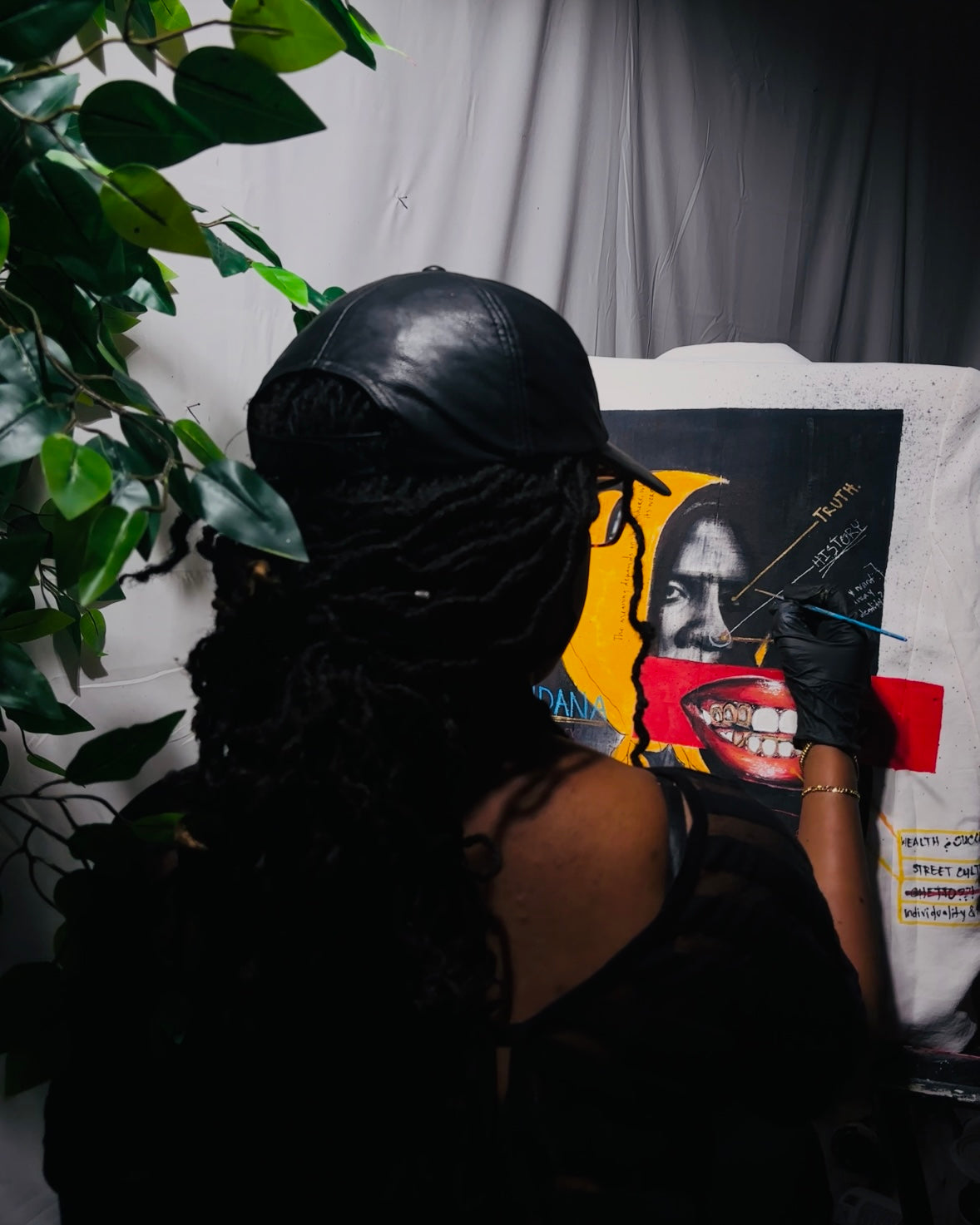 Towonda is an interior designer, writer, and producer who commissioned a portrait that beautifully reflects her vibrant life and creative spirit. She chose warm tones of orange and yellow, paired with a sleek black frame, to mirror her bold personality and warmth. She was overjoyed to receive a piece that truly felt like her.
